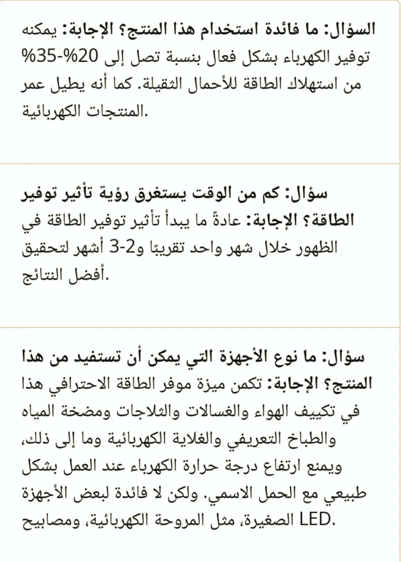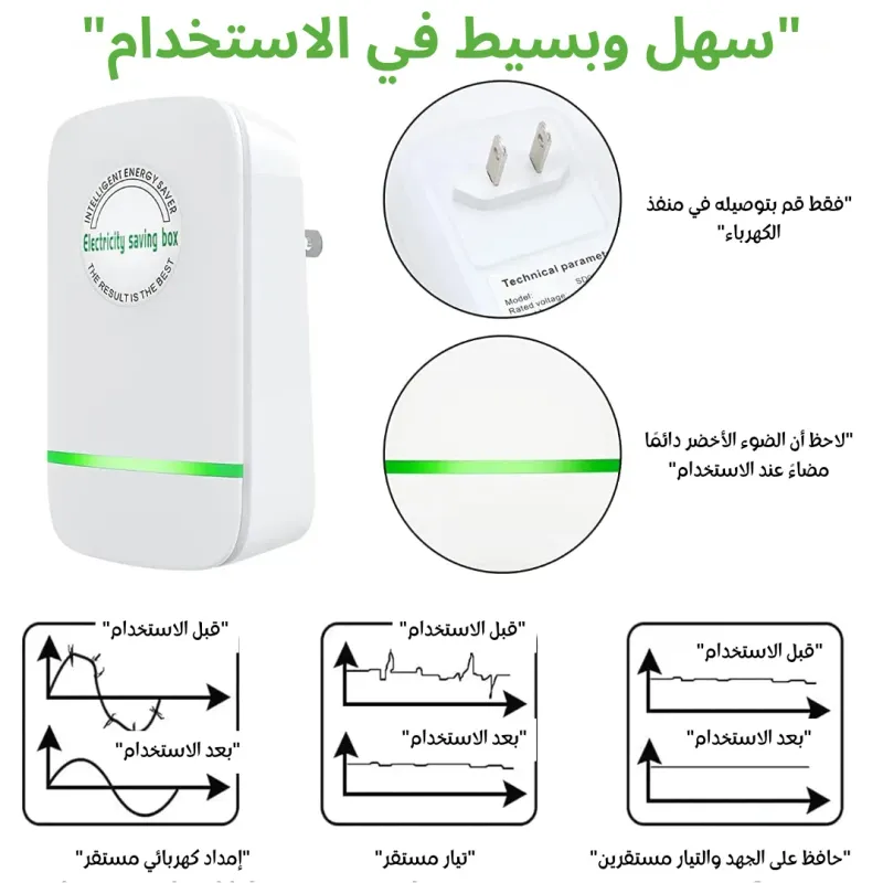 هذا المنتج هو جهاز توفير الكهرباء الذكي الذي يساعدك على خفض فواتير الكهرباء وتقليل استهلاك الطاقة في منزلك بسهولة وبأداء ممتاز.